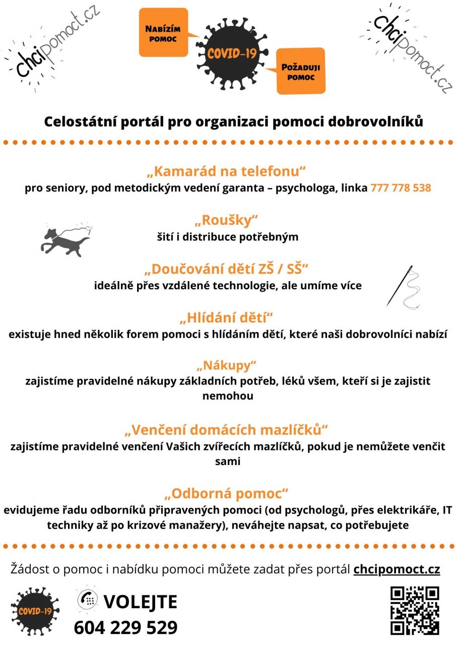 Cílem portálu chcipomoct.cz je zaznamenat, roztřídit a propojit dobrovolníky s žádostmi o pomoc. Toto propojení je kontrolováno operátory s cílem, aby nebyl žádný požadavek opomenut, nevyřešen.