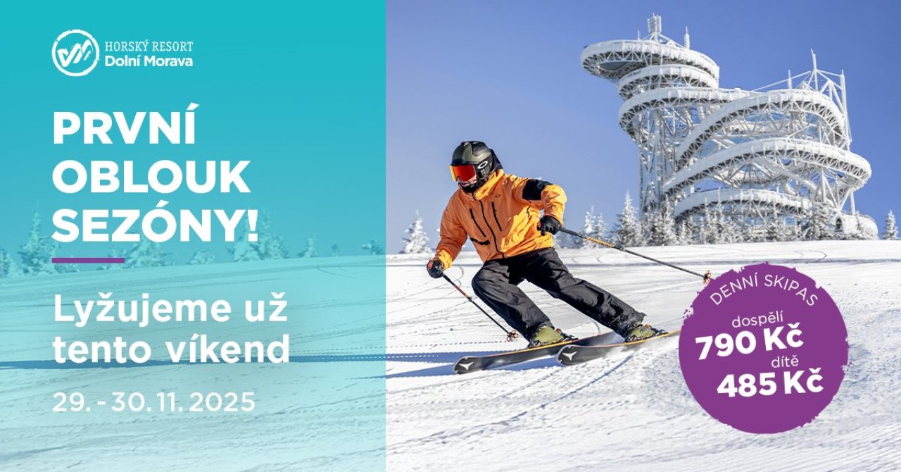 Na první lyžařský víkend 29. - 30. 11. 2025 Dolní Morava připravila následující ceny skipasů: