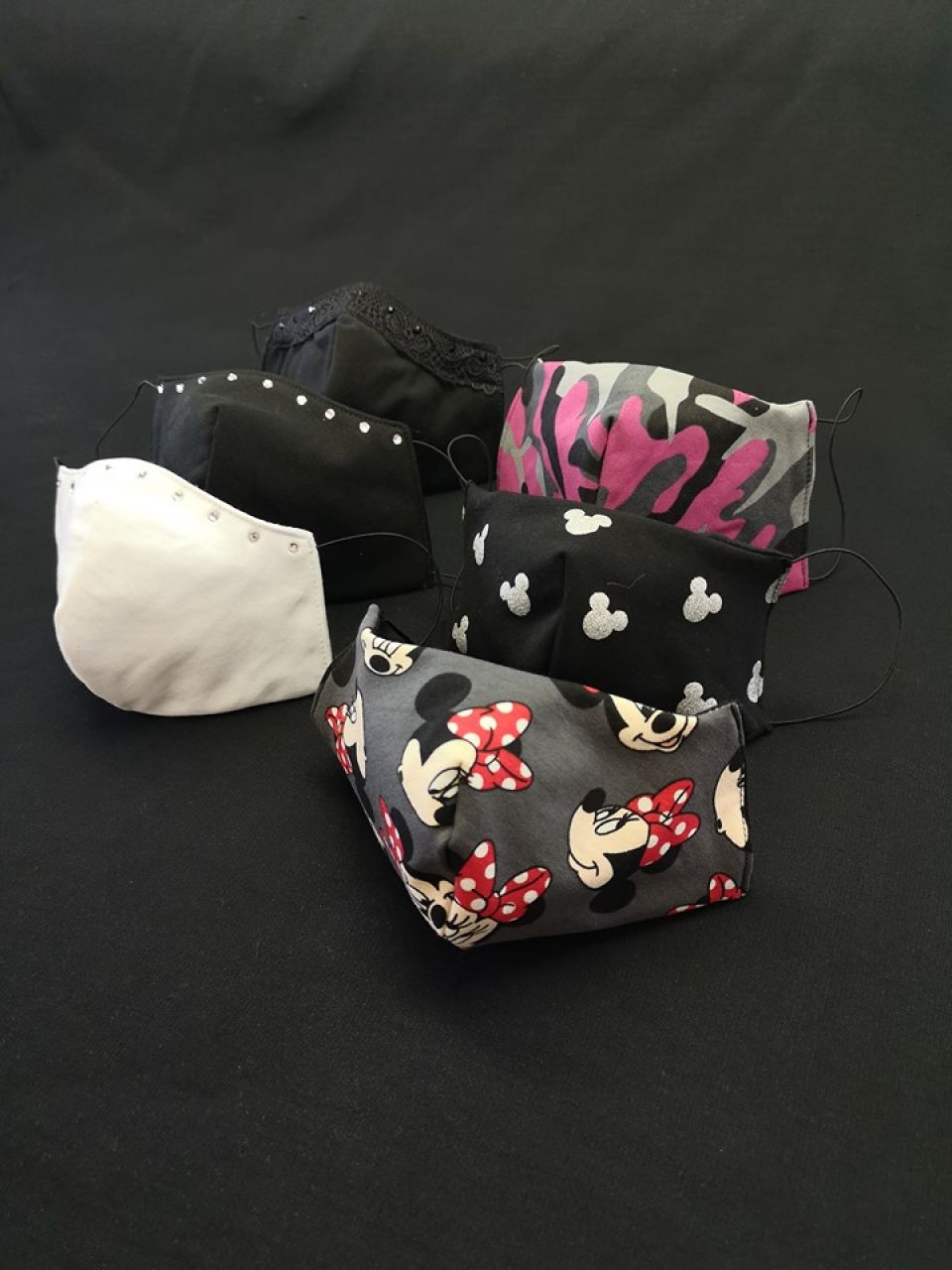 Jako návrhář jsem chtěl mít zase něco originálního. Troufám si říct, že jsem byl mezi prvními, kdo začal na výrobu roušek používat kromě barevné látky, také potisk nebo aplikaci kamínků. Například od značky Swarovski. Vytvořil jsem také roušku zdobenou krajkou a doplněou černými kamínky. To je jedna z posledních.