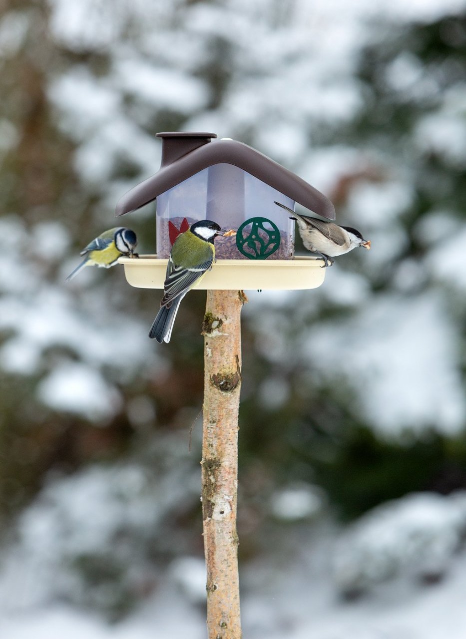 Krmítko by mělo být na klidném a dobře přehledném místě, nejlépe ve stínu a daleko od nezabezpečených skleněných ploch. Je potřeba dbát na pravidelné čištění a odstraňování trusu a zbytků potravy. V krmítku ptákům nabízíme slunečnici, vlašské ořechy, oves, proso, pšenici a další obiloviny či luštěniny. Kosy a drozdy potěší pár jablek či jeřabin, strakapoudy, brhlíky a sýkory tuková směs.