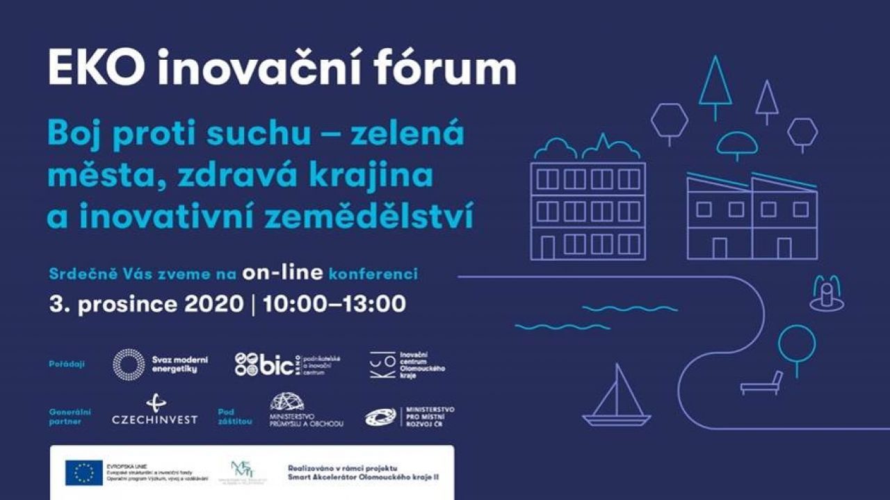 Inovační centrum Olomouckého kraje srdečně zve na 3. blok EKOinovačního fóra 2020. Přední čeští experti, akademici a také zástupci inovativních firem budou prezentovat moderní řešení v oblasti „Boje proti suchu – zelená města, zdravá krajina a inovativní zemědělství“.