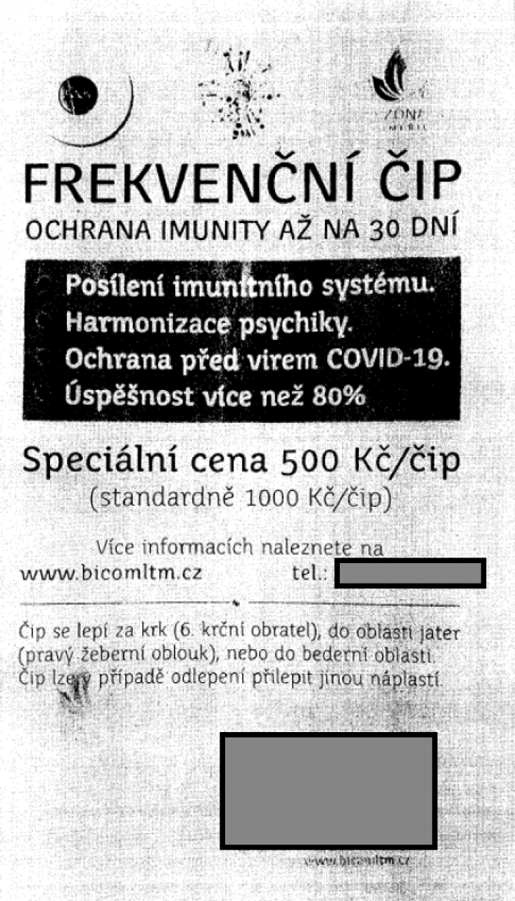 Nejvyšší sankce, a to ve výši 1 150 000 Kč, uložila ČOI pravomocně společnosti ELI ATD s.r.o. Ta mimo jiné nabízela i formou letáku k prodeji „frekvenční čip“ s ochranou před virem COVID-19 s možností jeho objednání telefonicky, sms nebo e-mailem a prostřednictvím internetových stránek uváděla nepravdivou informaci o jeho vlastnostech. Tento čip také nabízela na internetových stránkách www.biorezonance-litomerice.cz a www.bicomltm.cz se stejnou možností objednání.