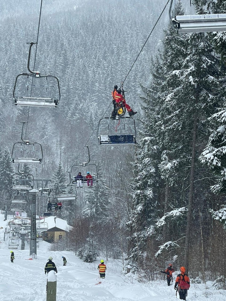 Při příjezdu týmu hasičů se lanovka pomalu pohybovala a couvala, takže hasiči mohli asi 90 lidí z porouchaného zařízení evakuovat rychle do bezpečí. Následně se však lanovka úplně zastavila a zbylých 40 lyžařů tak záchranáři museli dostat dolů z jednotlivých sedaček. V tomto ohledu nejvíce pomohli hasiči-lezci. Ti operovali ve skupinách a lyžaře spouštěli pomocí lezeckých technik v lanových úvazcích po jednom dolů. "Zachráněným jsme ihned poskytli tepelný komfort v podobě termoizolační fólie, a pokud bylo třeba, dovezli jsme je na naší čtyřkolce na parkoviště. Takto zasahovalo pět lezeckých hasičských skupin a dvě skupiny vytvořené ze členů horské služby, se kterými jsme na místě úzce spolupracovali," popsala Lucie Balážová.